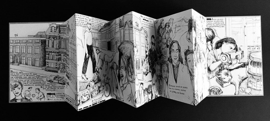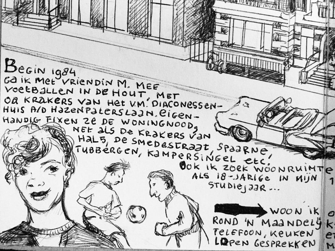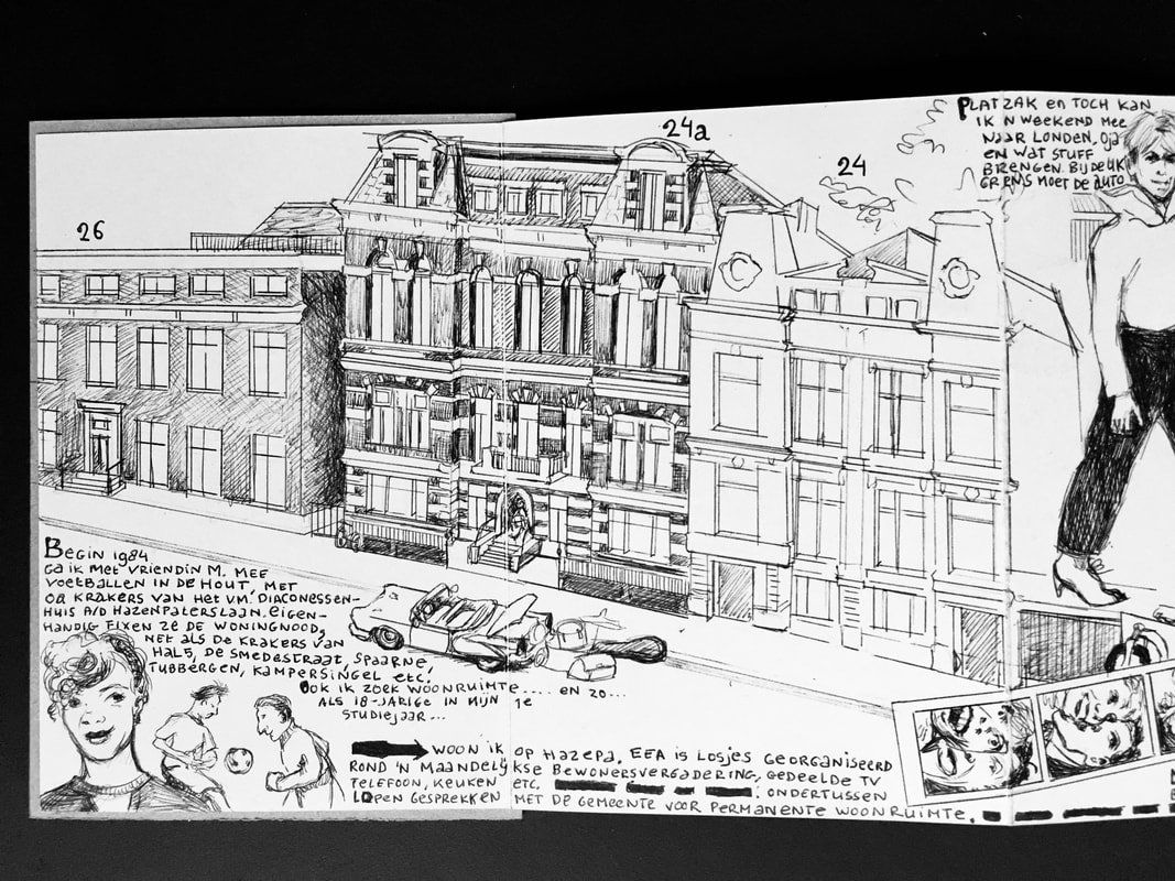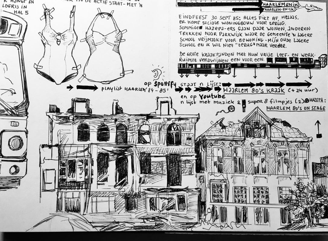 Hazepa was een van de vele kraakpanden in Haarlem. In 1984 - 1985 woonde ik daar, met ca 40 mensen, in het v.m. Diaconessenhuis aan de Hazenpaterslaan. Deze balpentekeningen staan in een van de leporello's van het project 'Haarlem en ik', van Stichting Artvark, waarmee gevierd wordt dat Haarlem 775 jaar bestaat in 2021. De balpentekeningen zijn hiermee een cadeau aan de jarige stad.