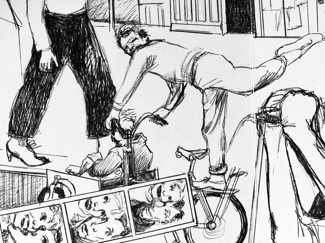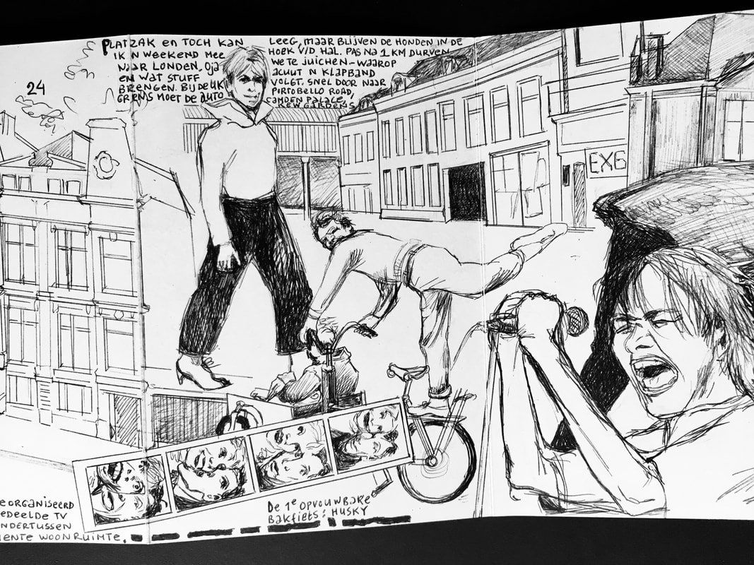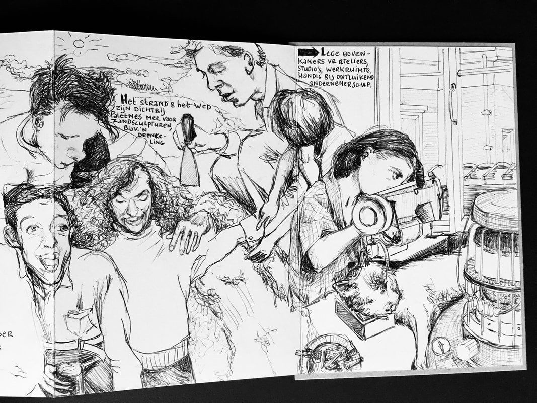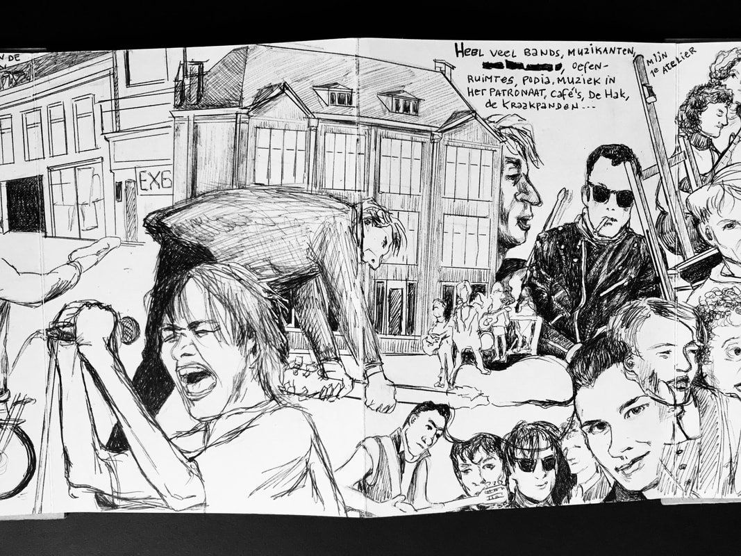 Hazepa was een van de vele kraakpanden in Haarlem. In 1984 - 1985 woonde ik daar, met ca 40 mensen, in het v.m. Diaconessenhuis aan de Hazenpaterslaan. Deze balpentekeningen staan in een van de leporello's van het project 'Haarlem en ik', van Stichting Artvark, waarmee gevierd wordt dat Haarlem 775 jaar bestaat in 2021. De balpentekeningen zijn hiermee een cadeau aan de jarige stad.